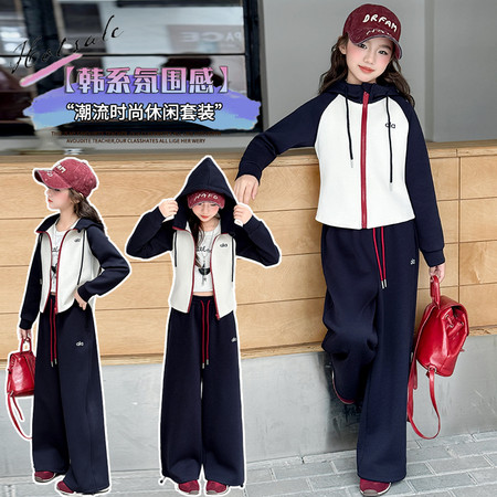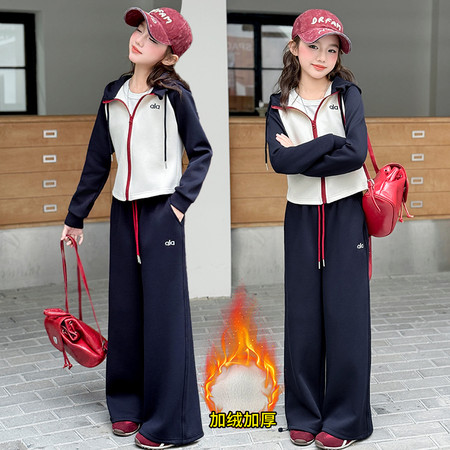 美*依下载视频“2571拼色连帽拉链衫小外套裤子套装加绒”